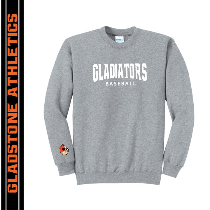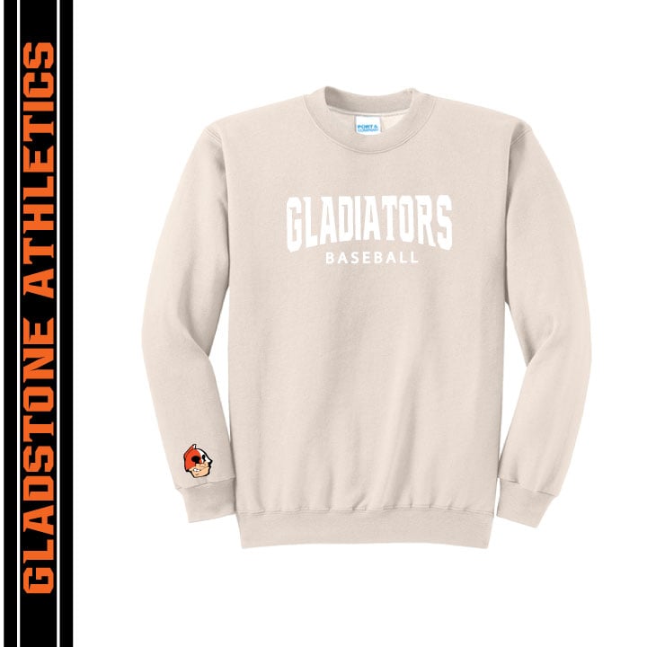 Baseball Crewneck, Natural/Black/Grey, White screen print